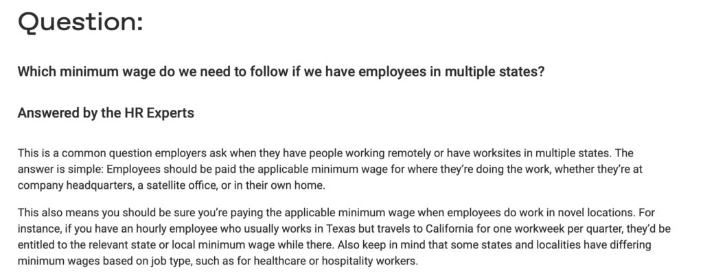 Question of the Week NOVEMBER 12, 2025 QUESTION Which minimum wage do we need to follow if we have employees in multiple states? ANSWER This is a common question employers ask when they have people working remotely or have worksites in multiple states. The answer is simple: Employees should be paid the applicable minimum wage […]